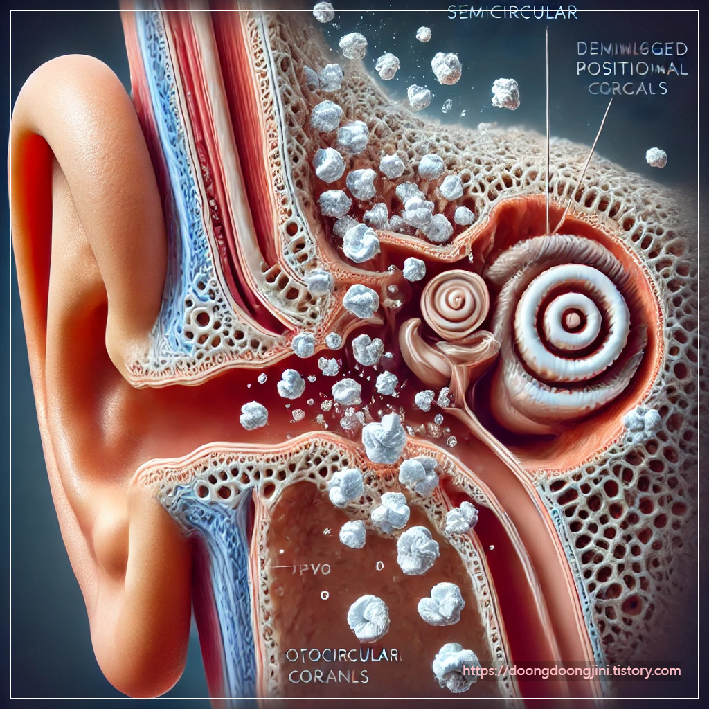 이석증은 귀 안에 위치한 평형기관(전정기관)에서 칼슘 탄산염으로 이루어진 작은 결석(이석)이 제자리에서 떨어져 나와 반고리관에 들어가면서 어지러움을 유발하는 질환입니다. 주로 돌발성 어지럼증(양성 돌발성 체위성 어지럼증, BPPV)을 일으키며, 특정한 머리 움직임에 따라 증상이 심해집니다.
